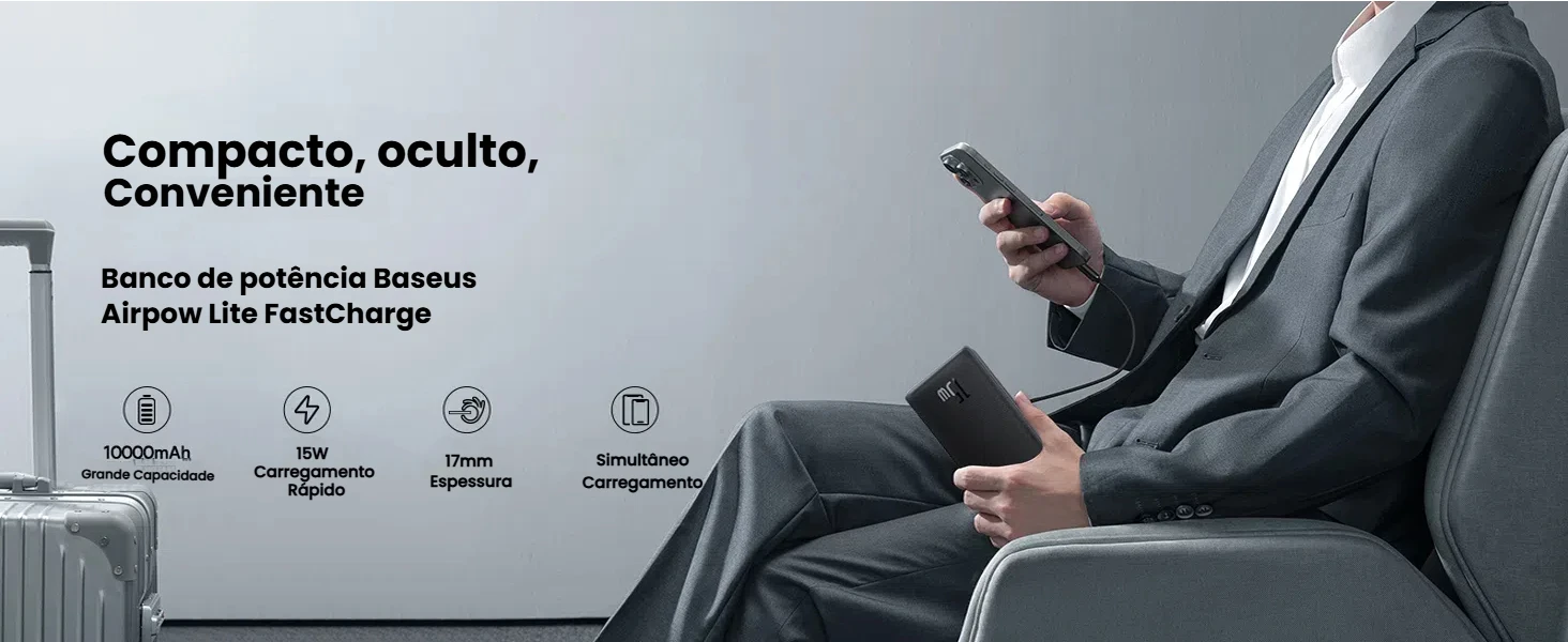 🔥 PowerBank Baseus Airpow Lite 10000mAh 15W – Rápido, Leve e Potente! 🔥